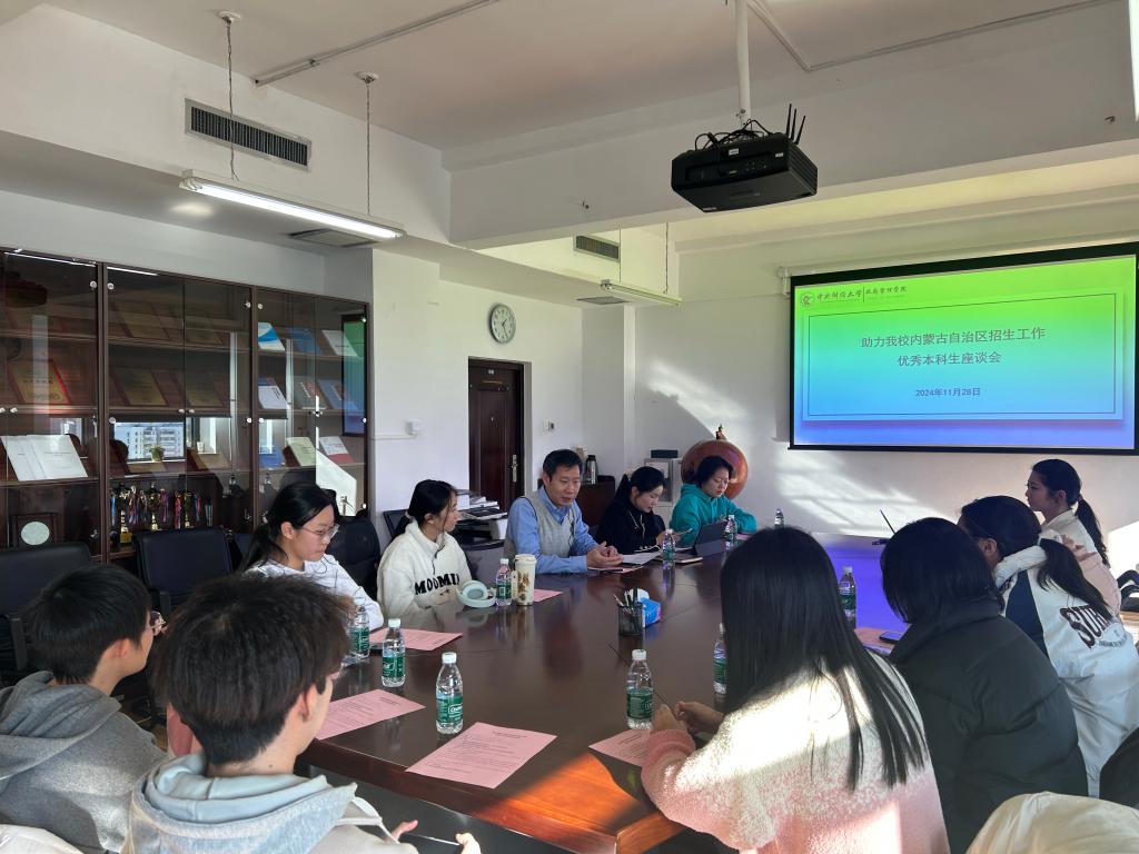 为深入了解公司内蒙古自治区籍员工在校学习生活需求,充分听取大家的意见建议,优化招生宣传工作方案,提升公司在内蒙古自治区招生工作质量,11月28日中午,英国上市官网365在主教1407会议室召开内蒙古自治区籍优秀本科生座谈会。内蒙古自治区招生宣传组组长、公司党委书记于鹏教授出席会议,教学科研办公室主任喻忱、副主任李想以及来自各公司的9名内蒙籍本科生参加会议。会议由内蒙古自治区招生宣传组副组长、公司党委副书记、纪委书记杨柳老师主持。