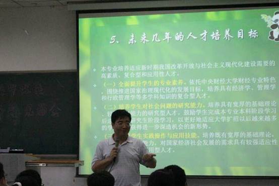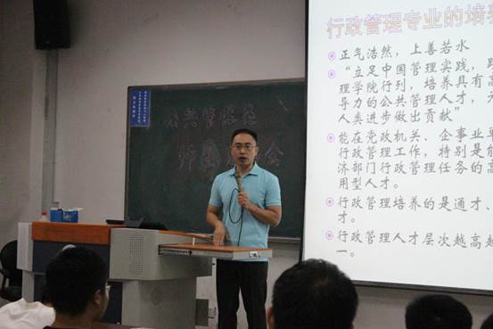 随后,曹堂哲老师介绍了行政管理专业在大学学科体系中的位置、专业培养方案、未来发展方向、大学学习与专业学习的关系。曹老师首先阐述了“行政关系”是公共管理各个学科关注的共同点,而“行政关系”的研究是行政管理专业的基础,行政管理专业在公共管理学科中具有基础性地位。随后曹老师指出行政管理专业培养的是通才、统御之才和领导之才,培养的员工能在党政机关、企事业单位、社会团体从事行政管理工作,特别是能够承担政府综合部门行政管理任务的高素质、复合型和应用型人才。曹老师还介绍了公司公共管理专业“1+3”人才培养模式和行政管理专业的知识结构,详细介绍了行政管理专业的知识模块。曹老师着重分析了公司行政管理专业的特色和优势,逻辑严谨,富有哲理,引起了同学们的强烈共鸣。
