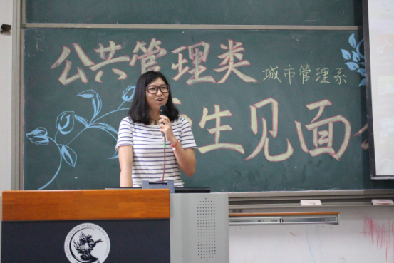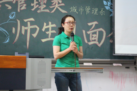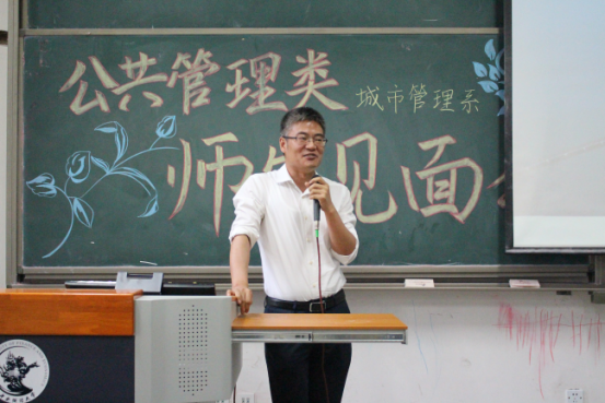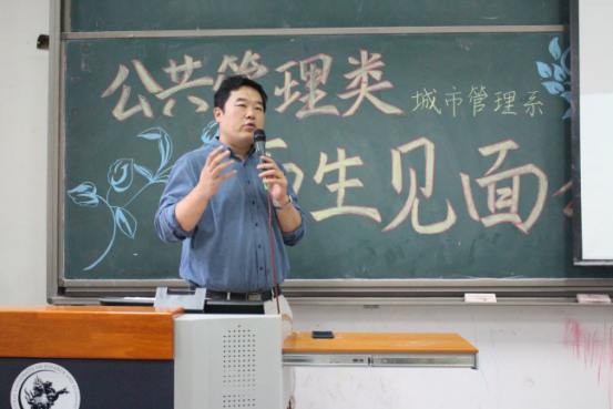 接下来是邢华老师用四个关键词来讲出他对同学们的成长期望:情怀、务实、精彩、大有可为。情怀:邢老师指出公共管理专业考虑的是公共利益,致力于研究通过公共政策的制定和公共事业的管理使人们生活得更好。“正气浩然,上善若水”的院训要求政管学子具有高度的社会责任感和社会使命感。在城市化浪潮中,只有具备了情怀,城市研究才能做得更好。务实:城市面临的问题十分具体,例如人口拥堵问题、交通拥堵现状以及与人们的生活息息相关的城市规划等。如何使秩序更加井然有序,则需要我们学习城市管理方面的知识,更好地理解城市、规划城市、管理城市。邢老师讲解道,城市管理专业的培养方案不仅教给员工众多的理论和技能,还培养了他们的全球视野、技术视野、财经视野。经济学、管理学、规划学等学科的学习,将为员工们的未来打下了十分深厚的基础。如今,城市管理专业的教师团队精干,教授、副教授人数众多,且都毕业于名校,知识结构、知识储备均是一流,相信会给予同学们足够专业的指导。精彩:面对同学们对专业学习的疑惑,邢老师认为城市管理专业的学习并不枯燥,反而生动有趣,模拟市长大赛、城市营销大赛都精彩万分。课程的设置更加关注于培养员工全方面素质,员工可以亲自动手设计城市规划,每学期都跟随师长进行社会实践,亲自走访调查。大有可为:邢老师向同学们介绍了城市管理专业的发展现状。目前公司设立了城市管理专业的硕士、博士点,同学们选择这个专业,未来发展空间大,无论是考研保研、出国、就业,都将有一个很好的发展。