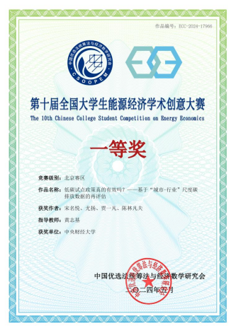 日,第十届全国老员工能源经济学术创意大赛在中国地质大学(北京)隆重开幕。在本届大赛中,在公司黄志基副教授的指导下,宋名悦、尤扬、贾一凡、陈林凡夫团队参赛作品《低碳试点政策真的有效吗?——基于“城市-行业”尺度碳排放数据的再评估》荣获北京赛区研究生组一等奖。