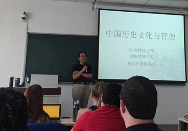 公司经理赵景华教授为研修班进行了开班第一讲。赵教授以中华五千年文明史为主线,从三皇五帝的华夏传说讲到近现代中国的建立,用丰富的历史资料和珍贵的历史文物深入浅出地向研修班成员展示了古老中国独特的历史文化,由此揭示了东方管理思想诞生的社会历史条件,为同学们理解中国文化、中国管理思想厘清了历史的发展脉络。赵教授精彩的讲解赢得了同学们的阵阵惊叹与掌声,尤其激起了美国同学对东方文化的极大兴趣。休斯敦大学商公司副经理王吉府教授主讲了西方现代领导管理的前沿理论,王教授采用了行为科学的教学方法,通过案例教学、性格测评等方式,将前沿管理理论寓于通俗的管理实际,加深了同学们对管理学最新理论的认识和理解。三株集团董事长吴炳新先生讲授了消费综合理论和经济发展与领导管理理论,将企业管理实践与学术研究相结合,提出了一套认识消费行为、经济运行和社会发展的新方法。山东社会科公司高级研究员李鑫生教授为研修班学员讲授了中国古代文化中管子、孔子和老子的领导管理思想。此外,美国埃尔泰克公司天津区经理与同学分享了在中国做生意的实践经历。美国驻华大使馆也通过讲座和大使交流的方式为同学们分析了中美关系。此次研修班课程内容涵盖了中国历史与文化、中外管理理论对比、领导管理前沿理论等多个领域,采取了课堂讲授、专题讲座、自主学习、团队讨论和总结汇报等多种授课形式。课程之余,研修班师生还参观了故宫、颐和园、泰山、孔府等名胜古迹,考察了天津的美国企业和济南的三株集团工厂,访问了美国驻华大使馆等。