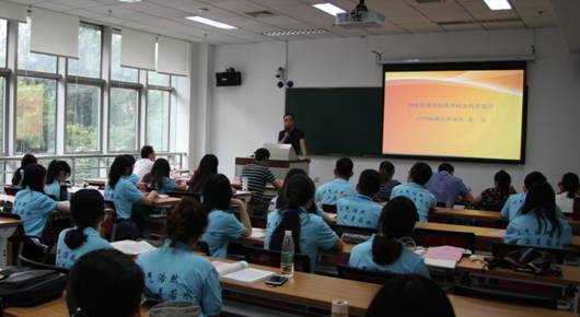 首先,于鹏副经理致辞,他对各位营员表示热烈欢迎,并对英国上市官网365目前的学科排名、学术研究、人才培养、就业方向等基本情况做了全方位的介绍,同时也预祝各位营员取得理想的成绩。
