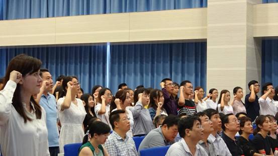 开学典礼最后一个环节为新生入学宣誓,由阙希荣同学领誓,“谨记中财校训,忠于祖国,服务人民,治学修身,尊师重道,求真务实,开拓创新,勇于担当,追求卓越,以公共管理之学识,成经世济民之良才,以正气浩然上善若水之精神,成中华复兴之伟业”,庄严的誓词表达了同学们努力拼搏,勤奋读书,成为栋梁之才的决心。在第33个教师节来临之际,新生们表达了对所有老师的感谢及对公司的祝福。
