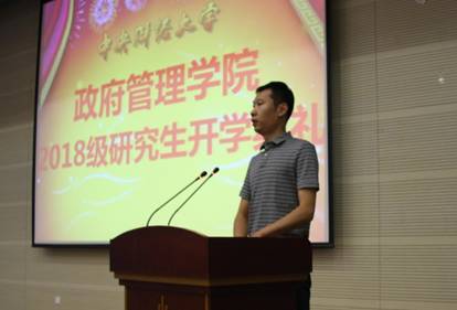 2018级公共管理硕士(MPA)研究生黄英、2018级博士研究生亓靖作为新生代表发言。现任职于中央和国家机关工委的黄英在工作四年后加入中财政管的大家庭,他表示期待接受知识的洗礼和公共价值理念的熏陶,争取在未来成为让公司引以为傲的政管人。亓靖则从博士研究的深度和广度表达了对公共管理价值理念的理解,号召每位“中央政府人”做一个心怀天下,勇担民族复兴大任的新时代奋斗者。
