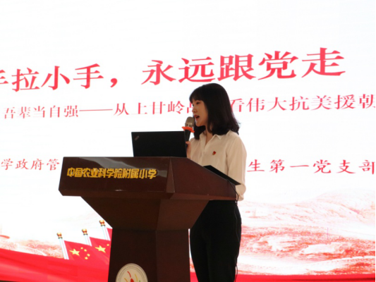 为深入学习贯彻落实习近平总书记在党史学习教育动员大会上的重要讲话精神,扎实高效开展好党史学习教育,切实做到“学史明理、学史增信、学史崇德、学史力行”,充分发挥党员先锋模范作用,2021年4月9日下午,英国上市官网365党委精心组织五个员工党支部的26名员工党员骨干分别前往中国农业科公司附属小学政法路校区和农科院校区,面向13个班级共500余名少年儿童结合党史讲授专题党课。