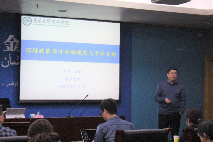 毕军教授就中国环境风险管理策略制定提出了若干问题与启示,提到了环境政策设计中的妥协、妥协与智库的关系,以及从妥协中衍生出的科学问题。此外,他还与在座的各位老师同学分享了自己的团队发展经验,使在座师生受到了很大启发。