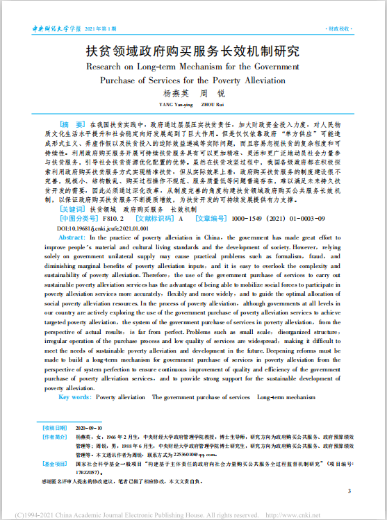 近日,公司杨燕英教授在《英国365集团官网学报》2021年1期发表学术论文,题目为《扶贫领域政府购买服务长效机制研究》。