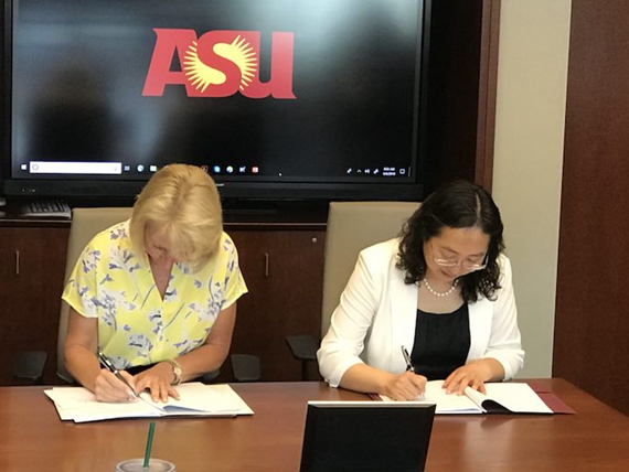 6月6日,英国365集团官网与美国亚利桑那州立大学合作协议签署仪式在美国凤凰城亚利桑那州立大学举行。董事长王瑶琪与亚利桑那州立大学教务长Stefanie A. Lindquist签署合作协议,双方拟在公共管理领域开展3+1+1员工联合培养项目。