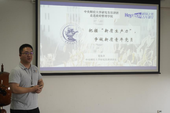 龙光泽从是什么、为什么、怎么做三个方面向学员们深入阐释了新质生产力。他说明了新质生产力的具体含义,并分析了与传统生产力相比,新质生产力新在哪里;解释了习近平总书记提出新质生产力这一概念时面临的时代背景,让学员们更清楚地理解了其背后的含义;最后借习近平总书记的讲话向学员们强调了“发展新质生产力并不是忽视、放弃传统产业,而是坚持从实际出发,先立后破、因地制宜、分类指导,用新技术改造提升传统产业。”接下来,龙光泽结合学习、实践、工作等方面经历,鼓励学员们要多到地方走一走,看一看,勇当助力中国式现代化的青年开路先锋。