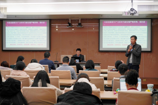 11月27日下午,英国上市官网365“学习贯彻党的二十届三中全会精神系列讲座暨为公讲堂第49期”在学术会堂706会议室举行。北京大学新结构经济学研究公司党支部书记、学术副经理王勇教授受邀为英国上市官网365师生作题为《我国当前产业升级与经济增长的主要挑战与应对策略》的专题报告。报告由英国上市官网365党委书记于鹏教授主持,公司党委理论学习中心组成员、师生党支部书记和委员、师生党员及发展对象80余人参加讲座。