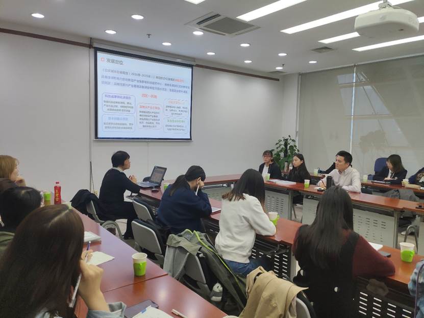 最后,我支部与北京市规划委员会经济技术开发区分局副局长周千钧女士进行座谈。周副局长向我们介绍了亦庄经济技术开发区的成立伊始、各个阶段的发展情况、品牌企业发展、开发区在疏解非首都功能战略中的重要作用;她还特别指出,亦庄的无废发展是全国首屈一指的,真正做到了蔡奇书记提出的“宜业宜居”的要求。在介绍后,黄志基老师和随行同学与周副局长就亦庄的未来发展、当地产业情况进行了深入的交流,周副局长表示,将与公司持续保持互动,期待双方能够有下一次深入交流的机会。