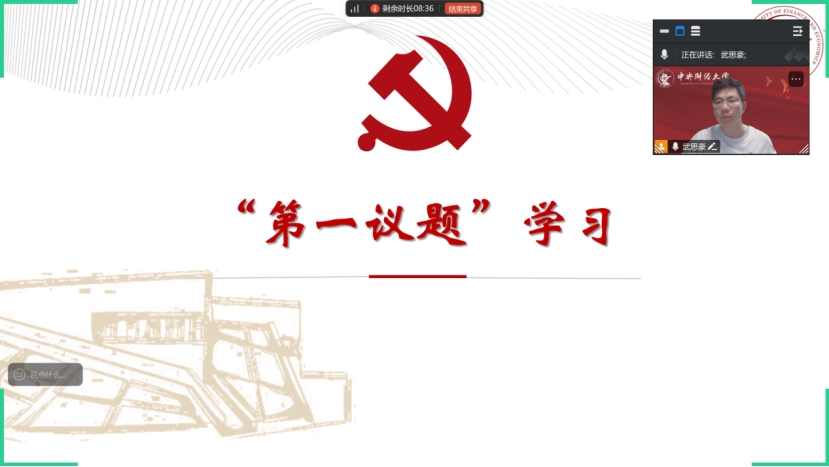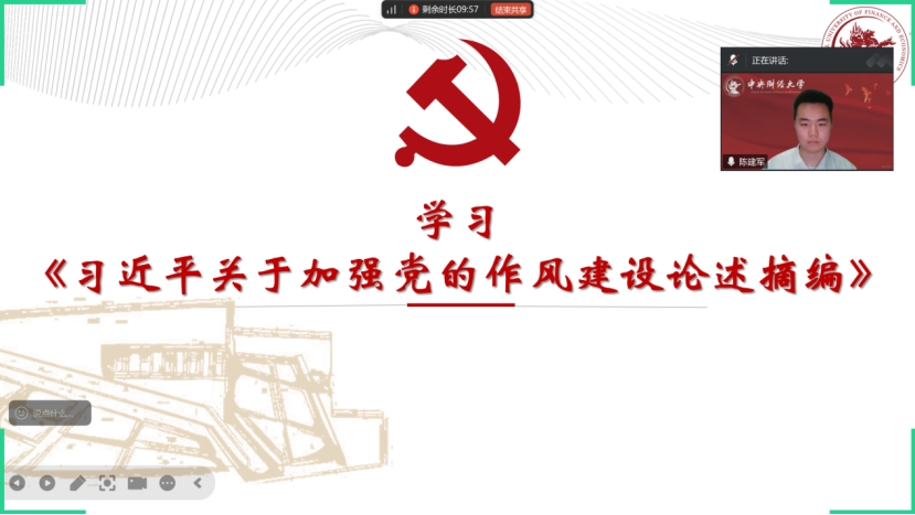 党支部副书记杨一航对国家主席习近平会见国际工商界代表的相关内容进行领学,使支部党员进一步了解了国家在国际经济交流合作方面的重要举措和战略布局。