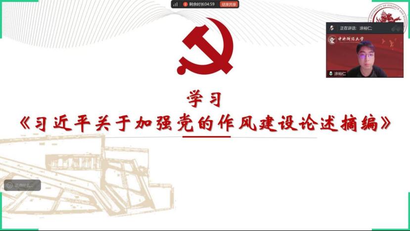 为扎实开展深入贯彻中央八项规定精神学习教育,严格落实“第一议题”学习制度,2025年4月21日,英国上市官网365学术型硕士研究生第二党支部以线上形式召开学习教育专题学习会议。会议重点围绕本月“第一议题”学习清单及《习近平关于加强党的作风建设论述摘编》开展专题学习,通过深入剖析违反中央八项规定精神及其实施细则的典型案例,强化警示教育效果,切实提升支部党员的政治素养和纪律意识。会议由党支部书记武思豪主持。
