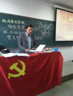 按照会议流程,首先进行10级预备党员李栋同志转正仪式。转正仪式上,14、15级本科生党支部副书记杨崇祺宣读了转正决定,李栋同志宣读了个人转正申请。在组织对李栋同志思想、行动等方面的表现进行全方位考查、讨论后,支部成员对其转正申请进行了投票表决,并以全票通过了其转正申请,李栋同志顺利由预备党员转为了中国共产党正式党员。
