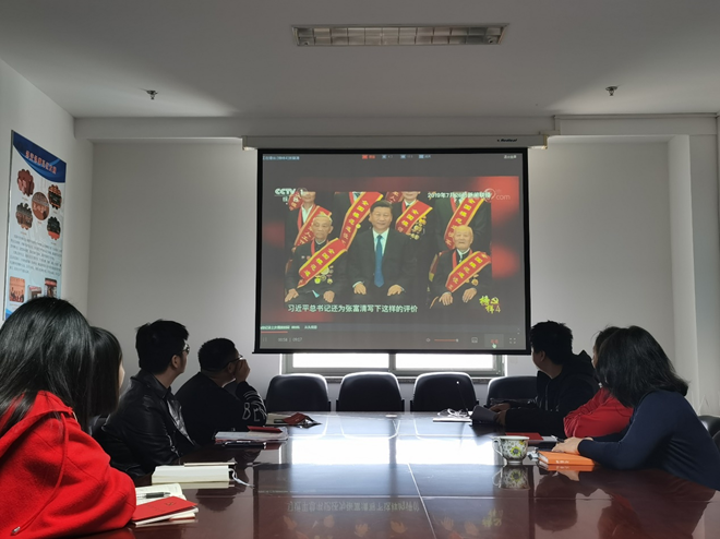会议伊始,支部全体成员集体观看了《榜样4》中张富清的片段。95岁的老党员、老英雄张富清在解放战争中战功赫赫,1955年转业到湖北最艰苦的山区工作,为贫困山区奉献一生。64年来,他从未向别人提及此事,更没有因此向组织提出任何要求,直到去年底退役军人信息采集时才被发现。张富清老人身上坚守初心、不改本色、朴实纯粹、淡泊名利的精神,令在座党员深深动容,更激励着各位党员艰苦奋斗、尽职尽责、敬业奉献,以脚踏实地的态度做好本职工作、服务好公司一流学科、一流公司建设。
