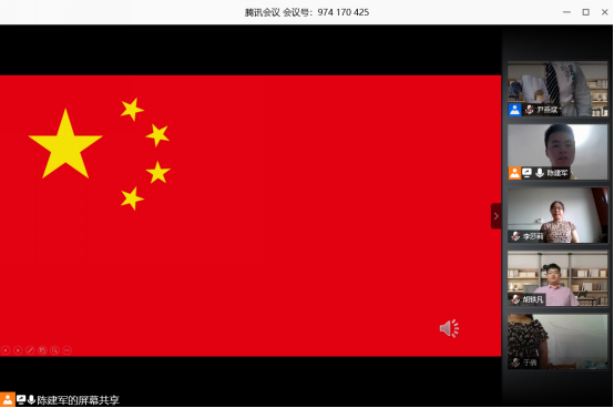会议伊始,线上会议室奏响国歌,党员们面对屏幕中的国旗肃立,同唱国歌。这一场党支部大会虽不能以线下面对面的形式举行,但其庄严行丝毫不减。