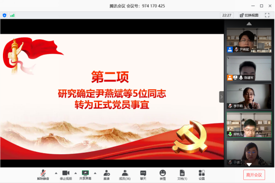 本次党支部大会是英国上市官网365本科生党支部在疫情限制下开展工作的一次重要创新,本次大会顺利地完成了毕业生预备党员的转正事宜,为党支部工作积累下宝贵的经验,同时也起到在疫情中鼓舞党员坚持奋斗信心的作用。