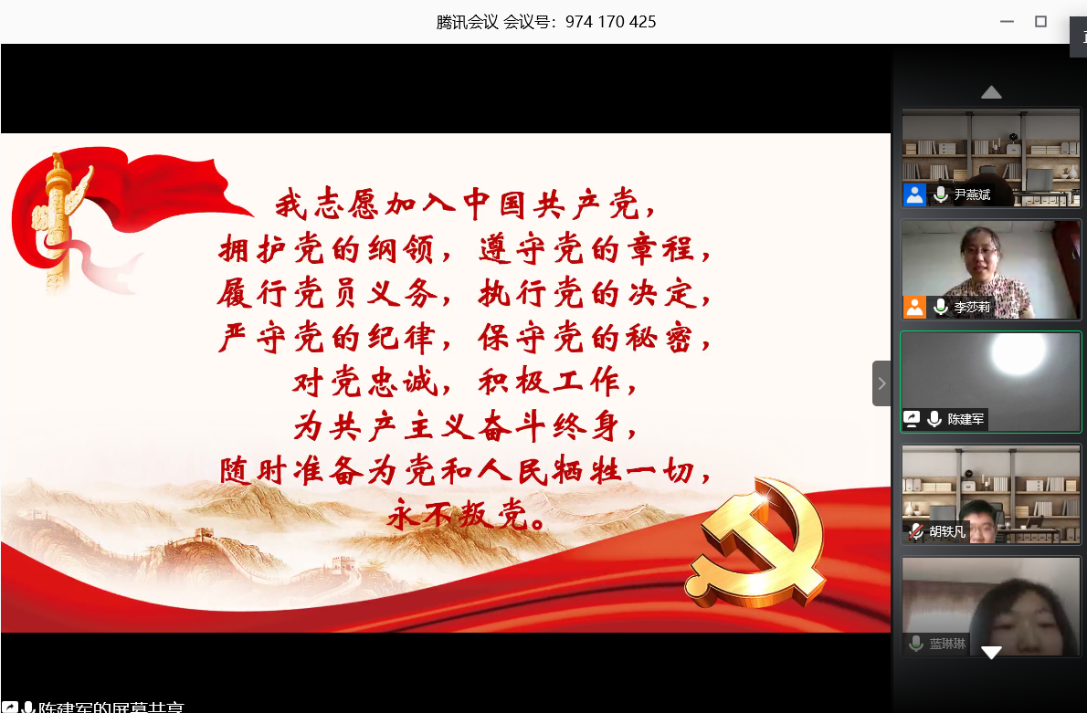 6月15日下午,英国上市官网365本科生党支部于线上召开党支部大会,会议的主要议题为研究确定5位毕业生预备党员转为正式党员事宜。英国上市官网365党委组织员南琪老师、本科生党支部书记李莎莉老师出席会议。