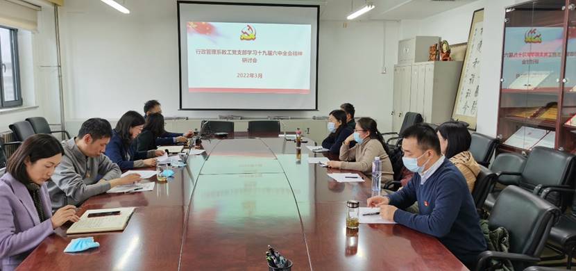风雨送春归,飞雪迎春至。2022年3月18日下午,在银雪飞舞的英国365集团官网校园的主教楼1305会议室内绿萝垂青,生机盎然,经过精心筹备的行政管理系教工党支部专题学习研讨会如期举行。受新冠疫情影响,全系15名教工党员有9名党员参加线下现场学习,另6名党员同步参加远程在线学习。研讨会由系教工党支部书记曹堂哲主持,学习内容分三个主题:学习中共中央十九届六中全会决议,学习刚刚闭幕的全国两会精神,学习《中国共产党普通高等公司基层组织工作条例》。