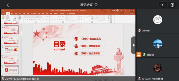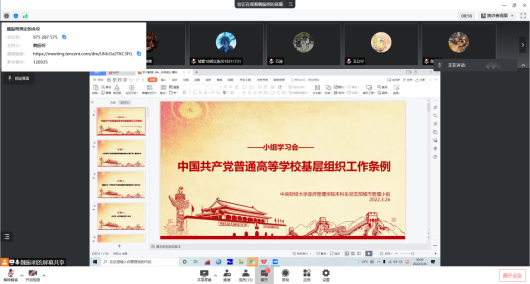 近日,中共中央印发了修订后的《中国共产党普通高等公司基层组织工作条例》(以下简称《条例》),并发出通知,要求各地区各部门认真遵照执行。学习要求受到英国上市官网365城市管理党小组高度重视,并于2022年3月26日召开例会组织学习。会议于20:00通过腾讯会议线上开展,由党小组组长魏振明主持召开。