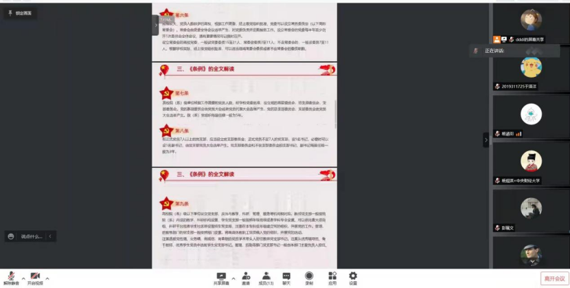 行管党小组于2022年3月25日19:30在腾讯会议进行线上学习,对《中国共产党普通高等公司基层组织工作条例》进行集体研读与讨论,会议由周明迪同志主持。