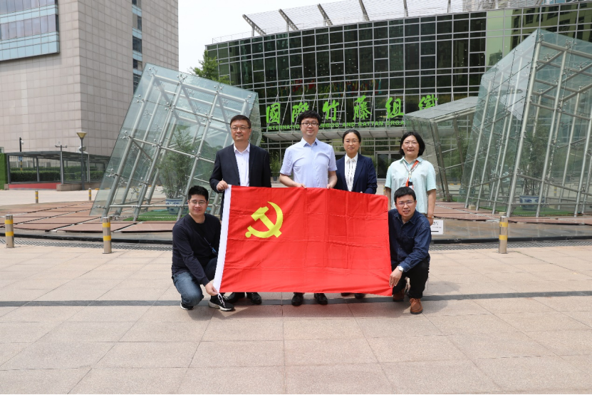 图1:国政系教工党支部在国际竹藤组织总部大楼前合影