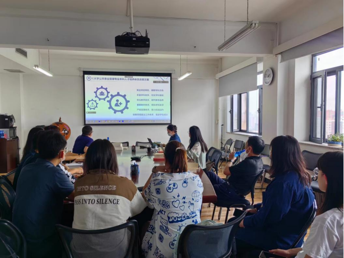 接着,员工党员喻金子同学分享了《公共事业管理专业本科人才培养体系改革调研报告》。喻金子同学结合公共事业管理系教师访谈和员工访谈,总结我系本科专业人才培养在教学、教材、课程设置等方面存在的问题,并提出突出财经特色、丰富学科体系、优化教学体系、更新教材体系、严密管理体系、创新思想政治工作体系等系列改革方案。