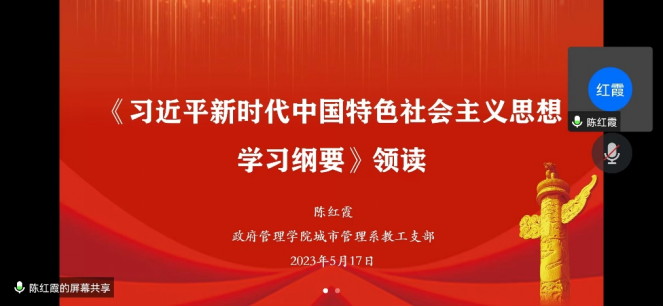 2023年5月18日中午,英国上市官网365城市管理系教工党支部书记陈红霞围绕深入学习贯彻习近平新时代中国特色社会主义思想,结合学习《习近平新时代中国特色社会主义思想学习纲要》,线上为全体党员讲授主题教育专题党课。