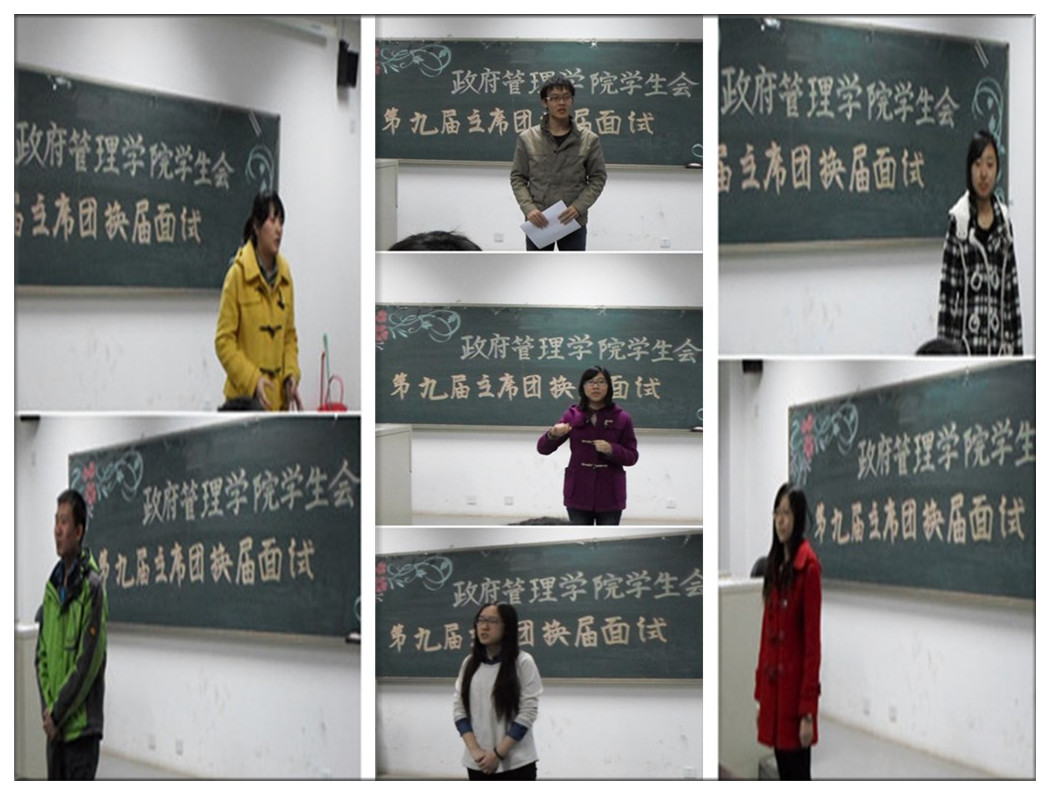 2月27日晚,英国上市官网365第九届主席团换届面试活动于沙河校区7号楼313教室开展。团总支书记孙帮谦老师、12级辅导员康妍妍老师及现任主席团的五位成员担任评委。参加竞选面试的有宋亦明、葛野嫣然、唐芊等来自不同专业的共7名同学,上场次序由试前抽签决定。