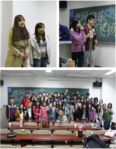 本次活动的高潮部分要数“情歌KTV”了。在这一环节,组织委员陈冰随机抽取一男一女,自由选择歌曲进行对唱。班对虽然还未出现,但通过浓情蜜意的句句歌词,教室里也弥漫着浪漫的气息。台上的一对对落落大方,已然没有开学初期的羞涩。不得不提的是班长在最后的深情独唱——《国际歌》,将班长的形象展现得淋漓尽致。经过一个半小时的游戏环节,大家吃得开心,笑得实在。最后的“时间囊”环节又将活动提升到了新的高度。面对问题——“你想成为怎样的人,未来的你将会站在何方”,每位同学都认真地写下了答案。