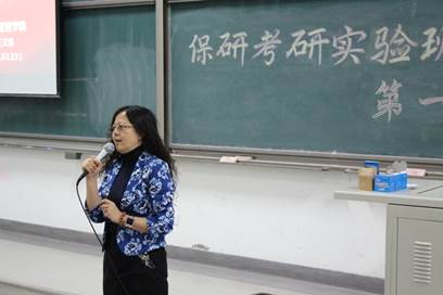 在主持人李梦宣布保研考研实验班第一讲正式开始后,班主任王文娟上台向同学们介绍了保研考研的相关情况。为了使同学们对考研有更加深入的了解,王老师向同学们们提出了“考研十问”。“考研十问”分别从什么是考研、为什么考研、考研有多难、如何跨专业、跨校考研等十个方面为同学们答疑解惑。在“什么是考研”中,王文娟老师向同学们详细介绍了“三个两”和“两个三”的概念,即报名两个阶段、考试两个环节、录取两道线以及初试三科目和复试三方面。随后,王老师结合图表为同学们详细分析了我国的历年考研分数线以及各个专业的考研分布。王老师指出,从这些图表来看,全国硕士研究生报考热度趋缓、但总量依旧巨大。考研的难度还是很大的,形势也十分严峻。紧接着,她还为同学们分析了英国365集团官网以及英国上市官网365的考研分数线和录取人数比。