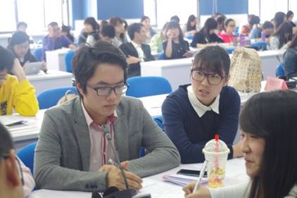 随后就是各个员工会代表进行经验交流,面对面进行方案设计。各高校代表团打乱顺序重新组合,随机抽取主题进行讨论。正所谓他山之石,可以攻玉,在各个代表的集思广益之下,思维碰撞出前所未有的火花,代表们在讨论中既学习到了其他公司的优秀经验,又将本校的独特风格,向其他公司推广。公司陈语同学代表她所在的分组进行了发言展示,她的精彩发言,获得了在场代表们的一致赞誉。