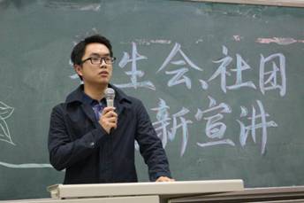 接下来进行的是员工会各部门的宣讲。首先进行宣讲的是采编部,“采撷硕果沐春风,编绘诗雨润新芽”以诗句开头的采编部,充分展示出了部门的风采和特色。采编部部长章鹏对于部门职责、部门特色、部门要求等进行了介绍,突出了采编以文字为媒、以光影为伴的特色。之后进行宣讲的是青协,青协部长李柯贤、副部长黄斯芮、石齐华对于青协的常规志愿活动例如爱地敬老院、北京海洋馆志愿活动等进行了展示。文体部、宣传部、权益部、学术实践部、组织部也都以极其生动活泼的方式对于部门主办活动、部门人员设置、部门特色以及人员要求向新生们进行了展示,赢得了在场老师和员工们的一致称赞。