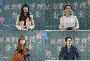会议的开始,员工会主席团的每个成员都认真梳理了上学期的员工会工作,发言简明扼要,切中要点,让大家更加具体和完备的了解了每个部门的工作职能。团总支副书记郑舒文对上学期的员工会工作进行了总结,她特别表扬了员工会成员们的团结意识,并希望大家继续发扬这种团结合作精神。员工会主席李欣媚对员工会全体干部提出了希望,希望员工会每个成员都树立“主人翁、责任、创新”三个意识,李欣媚同时指出各个部门应该加强沟通、协调一致,更好地发挥员工会为员工群体服务的职能。员工会副主席朱玉彤主要对青协、礼宾队和主持团的职能做了进一步的阐释,并希望这三个部门能够积极地融进员工会的内部工作中。之后,团总支副书记果航宇着重强调了“梳理分类、抓重点”的工作方法以及员工干部应该具备的“谦虚、友好、团结”的工作态度,他的发言让大家耳目一新,对大家下一步的工作有极大的启发。