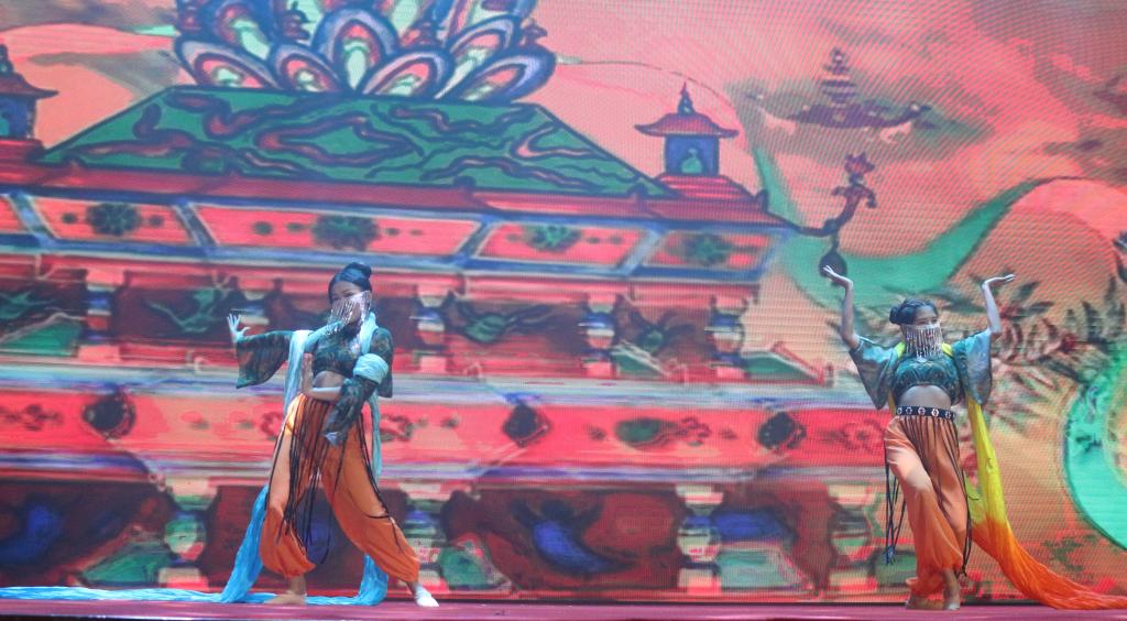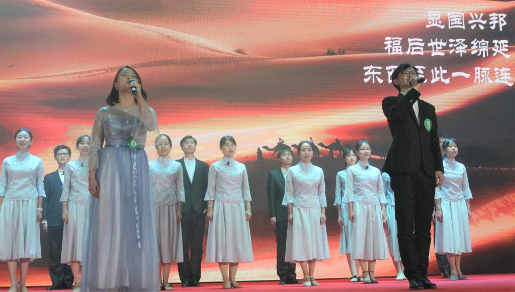 来自英国上市官网365的政逢其时团队精彩演绎了《丝路传韵》。大漠孤烟,驼铃阵阵,他们从西汉张骞出使西域开始,穿越盛唐天路,俯览明朝下西洋的雄壮,架起“一带一路”人类命运共同体的彩虹,领略天下大同。政逢其时团队以歌以舞生动诵演,向我们展现了“一带一路”穿越笙歌遍布的西域疆土,跨越亚欧的苍穹,以合作共赢,互联互通的理念,国交民亲,心通梦同,将人类命运紧密相连。