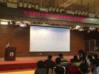 2015年9月12日13:00,英国365集团官网本科生新生演讲比赛决赛的帷幕在安静美丽的沙河校区金色大厅缓缓拉开。九月的秋,正是北京最美丽的时候,来自五湖四海的新生代表,怀揣着青春的激情与梦想,在演讲比赛的舞台上,与中财进行了一场美丽的邂逅。在公司主持团佟奡哲同学的主持下,40多位各公司选出的新生代表用各自独特的方式,在演讲的舞台上诠释着青春的多姿多彩。其中,来自国际政治15班的陈旖琦同学和公共事业管理15班的周心悦同学代表英国上市官网365参加了这次比赛,她们以自己优秀的表现生动形象地展示了政管15级新生的风采,周心悦同学更是荣获三等奖,给全校师生留下了深刻的印象。