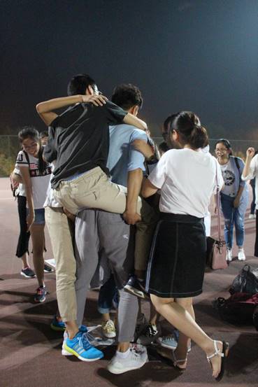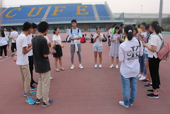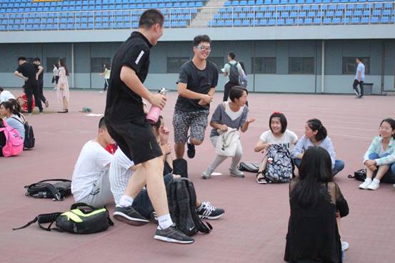 伴着落日的余晖,一场场精彩纷呈的系列趣味性游戏正在上演,同学们在游戏中中结识了新伙伴并收获了宝贵的友谊。按照活动规则,新生们10-12人为一个小组,在芮+导师、班级助理以及16级员工会同学的带领下进行了游戏以及相关互动。