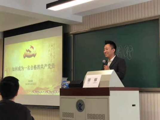 随后杨崇祺学长结合自身经历,向同学们介绍“如何成为一名合格的共产党员”,为大家更好地理解党员、员工党员提供思路,分享经验。杨崇祺学长主要从“德、法、术、势”四个字分别阐明自己的理解:“德”字包含正气、立志、信念。其中正气需要从“正气浩然,上善若水”的院训来理解;立志是指公共精神;信念则主要表现为深入马克思主义,体会其中的道理。“法”字来源于内心的原则,分为内法和外法两个部分:内法讲求个人的自律,外法则来自外界的法律。“术”字是指掌握与自己的目标有关的本领,使自己能独当一面。“势”字则是内心的和谐,需要立足中国实际,服务社会。这四个字的解释清晰明了,让同学们获益良多,感受到了共产党员的责任与情怀。