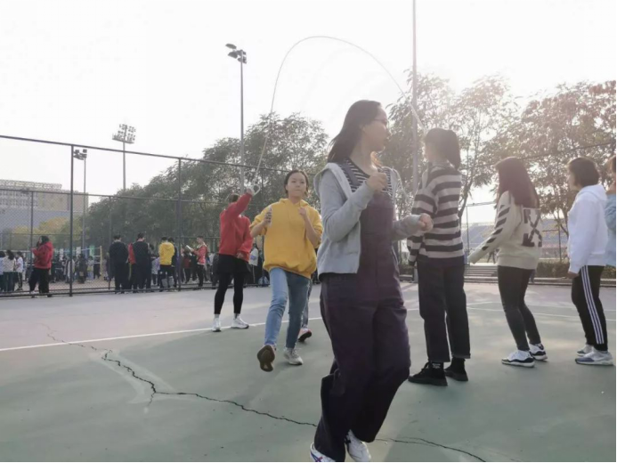 短暂的休息后,竞争激烈的集体跳绳赛开始了。在检录处,同学们按照赛前练习的标准进行热身和训练,及时调整人员安排,克服场地的生疏,将比赛状态调整到最佳。裁判员一声哨响,同学们一个接一个冲进绳中,虽然比赛中也出现一些意外状况,但同学们都能冷静地处理,机灵应对,化险为夷。这就是政管学子,他们冷静、理智,他们热忱、务实,他们为政管而战,他们风雨无惧。