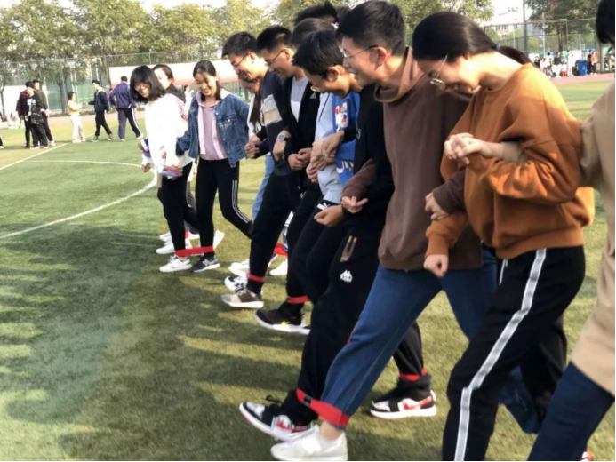 绑腿跑作为第一个开赛的团体项目,对同学保持高昂士气与信心至关重要。10月23日下午2:00,二十位同学斗志满满,组成政管公司代表队,来到绑腿跳检录处检录。同学们利用候场时间,练习出腿、口号,并及时调整战术,力争提高速度,节省时间。2:30,备受瞩目的绑腿跳比赛正式开始。整理好粘带后,但听哨声为令,二十位同学一齐向前冲出。比赛中,同学们默契配合,相互理解,及时调整,脚挨脚,心连心,为政管而战的他们是赛场上最耀眼的光。