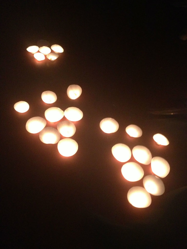 在此后的点蜡烛环节,国政12团部利用形状不同的红色蜡烛摆出“脚印与光明”的组合图案,寓意