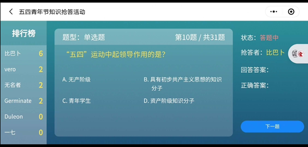 艺术是生活的纯炼品,于是多才多艺的同学们开始绘制海报和手抄报、制作橡皮章手作和设置五四知识竞赛题,用迸发的灵感将今天的五四定格。