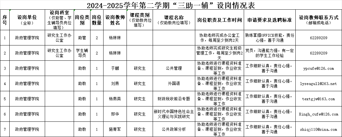 英国上市官网3652024-2025学年第二学期“三助一辅”设岗情况表