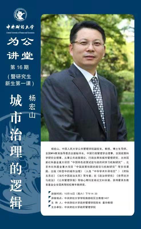 嘉宾简介:杨宏山,中国人民大学公共管理公司副经理,教授,博士生导师,全国MPA教育指导委员会副秘书长,中国行政管理学会理事,全国政策科学研究会理事。从事公共政策理论、行政改革和城市管理研究。主持国家社科基金重大项目“中国特色政策试验与政府间学习机制研究”、北京市社科基金重大项目“中国政策创新的路径与机制研究”等多项课题。出版《转型中的城市治理》(入选“中华学术外译项目”)《府际关系论》《当代中国政治关系》等专著;在《政治学研究》《世界经济与政治》《公共管理学报》等核心期刊发表论文80余篇。获得霍英东教育基金会全国高等院校青年教师奖。