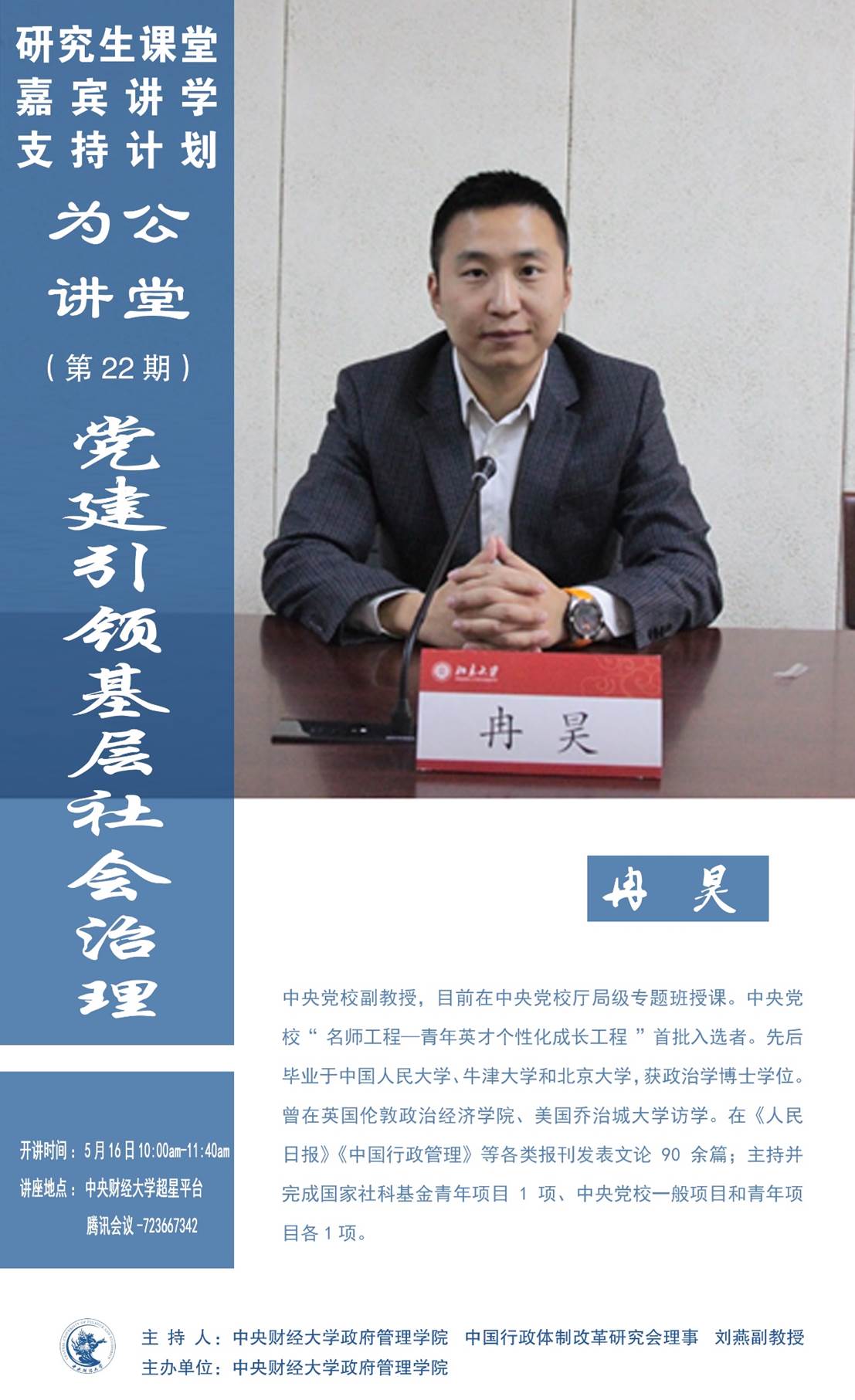 嘉宾简介:冉昊,中央党校副教授,目前在中央党校厅局级专题班授课。中央党校“名师工程—青年英才个性化成长工程”首批入选者。先后毕业于中国人民大学、牛津大学和北京大学,获政治学博士学位。曾在英国伦敦政治经济公司、美国乔治城大学访学。在《人民日报》《中国行政管理》等各类报刊发表文论90余篇;主持并完成国家社科基金青年项目1项、中央党校一般项目和青年项目各1项。