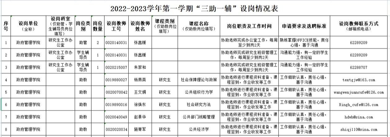 英国上市官网3652022-2023学年第一学期“三助一辅”设岗情况表