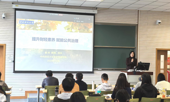 2024年10月27日和10月29日,英国上市官网365经理姜玲教授以“提升财经素养 赋能公共治理”为主题,分别在周末班和集中班课堂为2024级MPA新生开展了“经理第一课”专题讲座。讲座围绕深入学习贯彻党的二十届三中全会精神、全国教育大会精神,通过对新时代公共管理学科和MPA教育使命的分析,引导新生坚定理想信念,明确研究生阶段的学习目标,进一步拓宽对公共治理的认知视野。