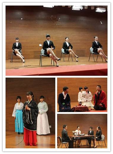 六支参赛队伍依次上场,向观众和评委展示个人和团队风采,在风采展示环节,古典朴素的古代礼仪,优雅端庄的现代礼仪,古色古香的精湛茶道和幽默活泼的穿越情景剧,无不展示了中财学子深厚的文化底蕴和人文素养以及对礼仪知识的独到见解。在比赛进行的同时,场内场外的观众也通过人人墙积极参与选手互动,踊跃发言,为自己心仪的代表队加油,同时也活跃了比赛氛围。