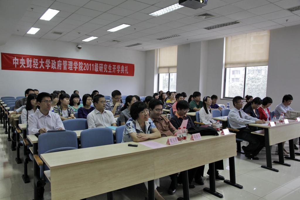 9月8日上午,公司在中财大厦三层通2教室举行了2011级研究生开学典礼。公司副经理邢华副教授,党总支副书记包英娟老师,行政管理系主任施青军教授、公共事业管理系主任徐焕东教授,硕士生导师栗玉香研究员,公司主管研究生工作的经理助理王红梅副教授出席。包括行政管理专业、教育经济与管理专业硕士研究生、全日制公共管理硕士(MPA)、博士研究生在内的58名2011级新生参加。典礼由MPA办公室主任于鹏老师主持。