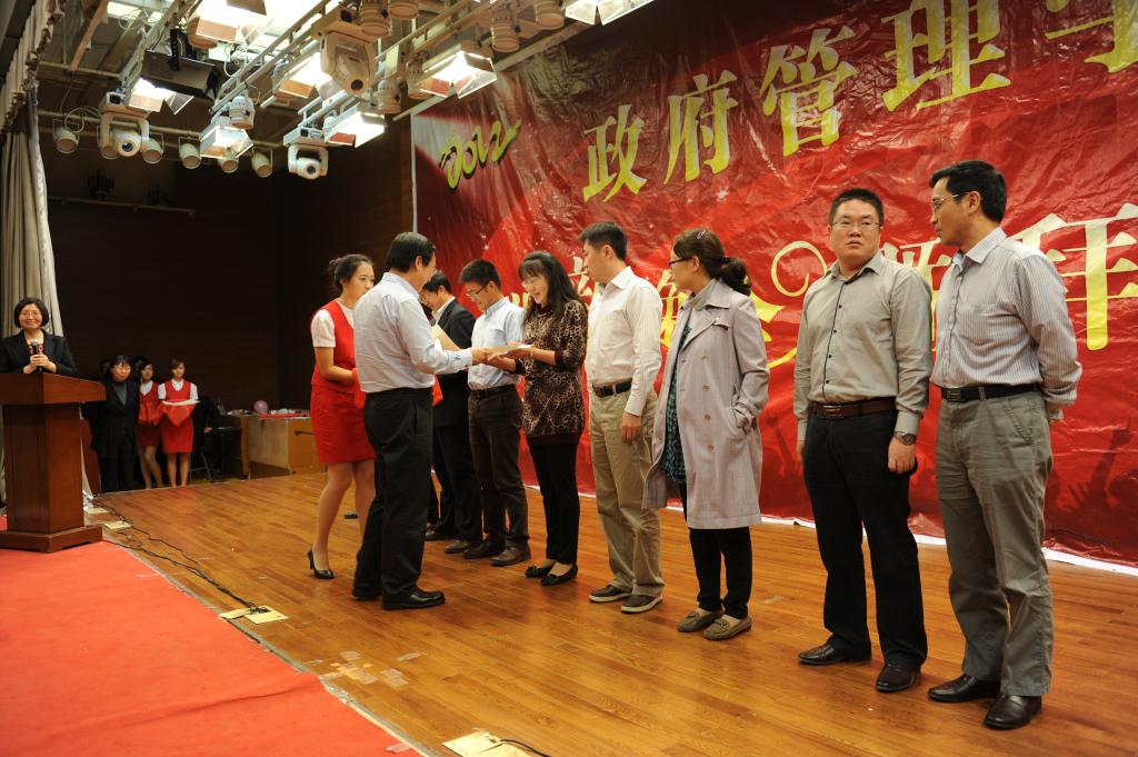 接下来,在酷炫的开场舞煽动下,迎新晚会正式拉开帷幕。刚强的军魂操与柔情的咏春舞形成强大视觉冲击,歌曲《我爱政管》瞬间点燃大家的热情,high翻全场。全场洋溢着青春的热情和年轻的跳跃。激情与感动巧妙融合。在经理抽奖环节里,看着6位同学感激地接过赵经理所赠的宝贵图书,大家都深深感动着经理对弘扬中国文化的殷切期盼和对同学们的用心良苦。感动持续绵延,《政管欢迎你》的歌词飘扬,传唱出学长学姐对12级学弟学妹的热情欢迎与诚挚祝福,那一刻,政管就俨然已成为一个大家庭,温馨而甜蜜,情谊之花瞬间开放。接下来,在师生交流环节中,老师以温柔的微笑和幽默的言辞瞬间融入各位同学,闲聊过程中,坚定、自信悄悄浮现在大家年轻的脸庞上。最后在大家的掌声中和快乐的氛围里,晚会圆满结束。通过本次典礼举行,新生消除了初入学的焦躁与不安,整个公司的凝聚力,向心力增强,大家对未来开始充满自信与斗志。